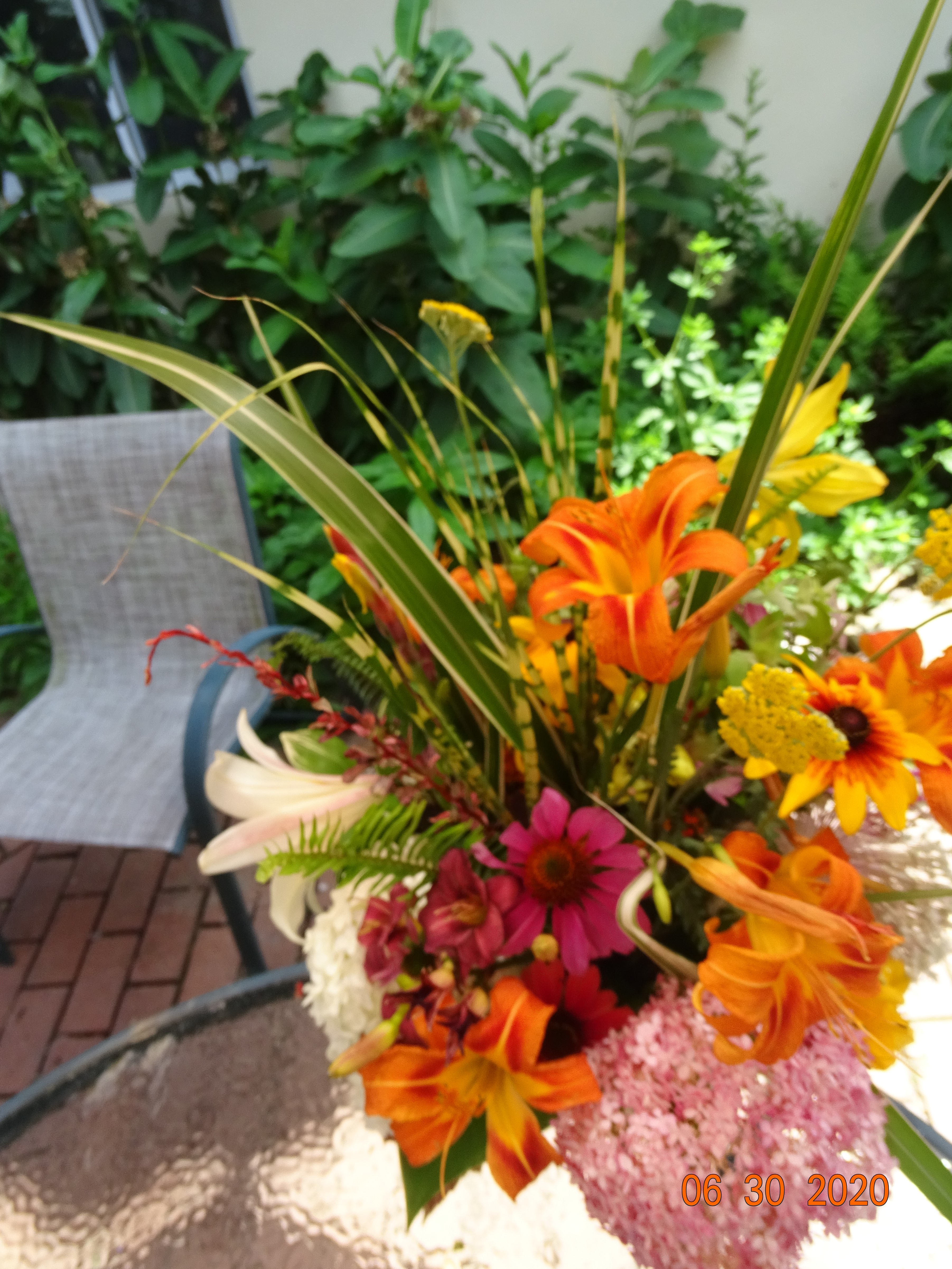 Attached is a photo of the flower arrangement composed by Jim Rapp to honor the memory of Anne Jacoby. It was prominently displayed at the memorial service held on July 1.