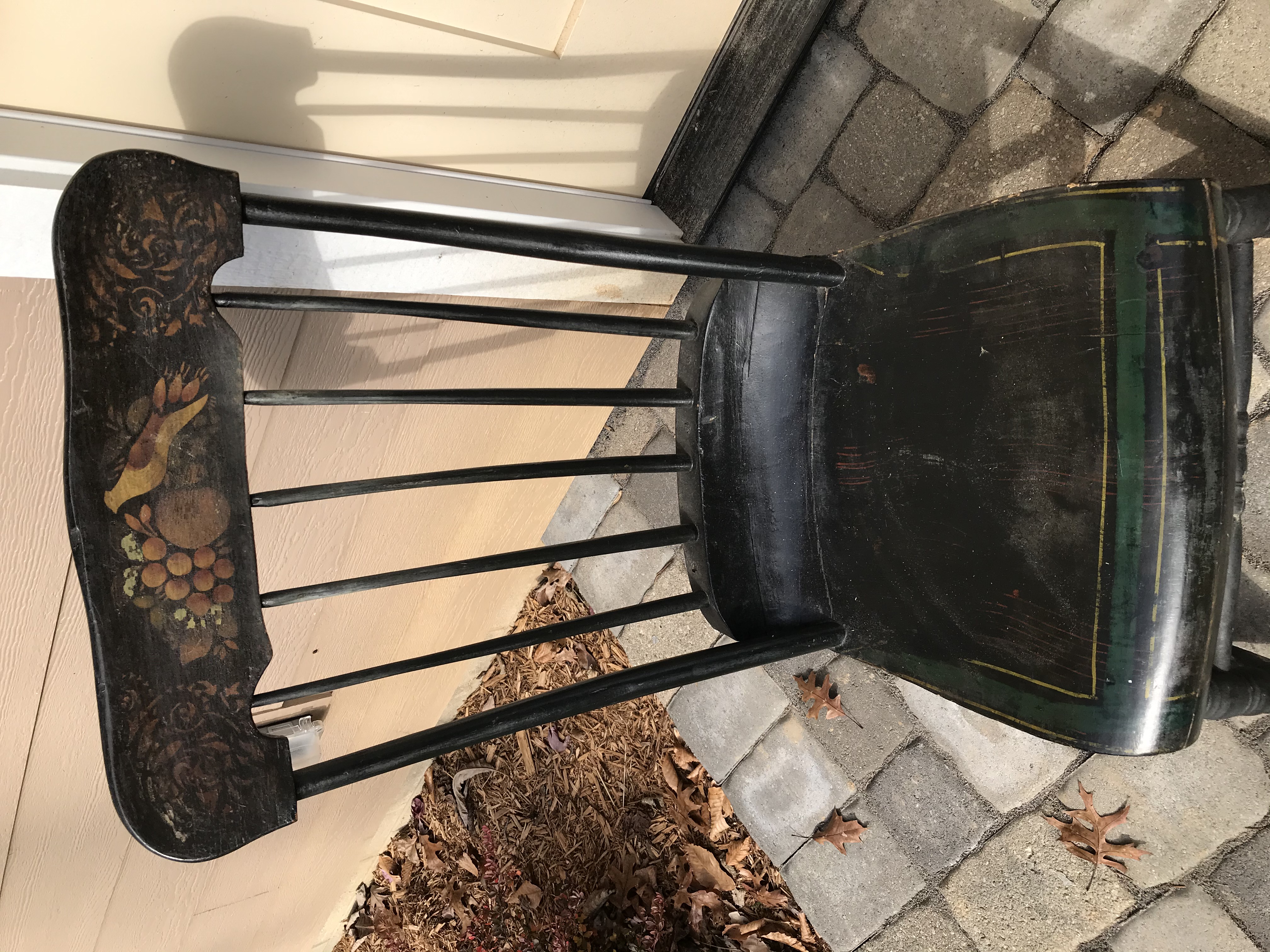 Item No. Four: Black tolle painted chair with beautiful detailing.