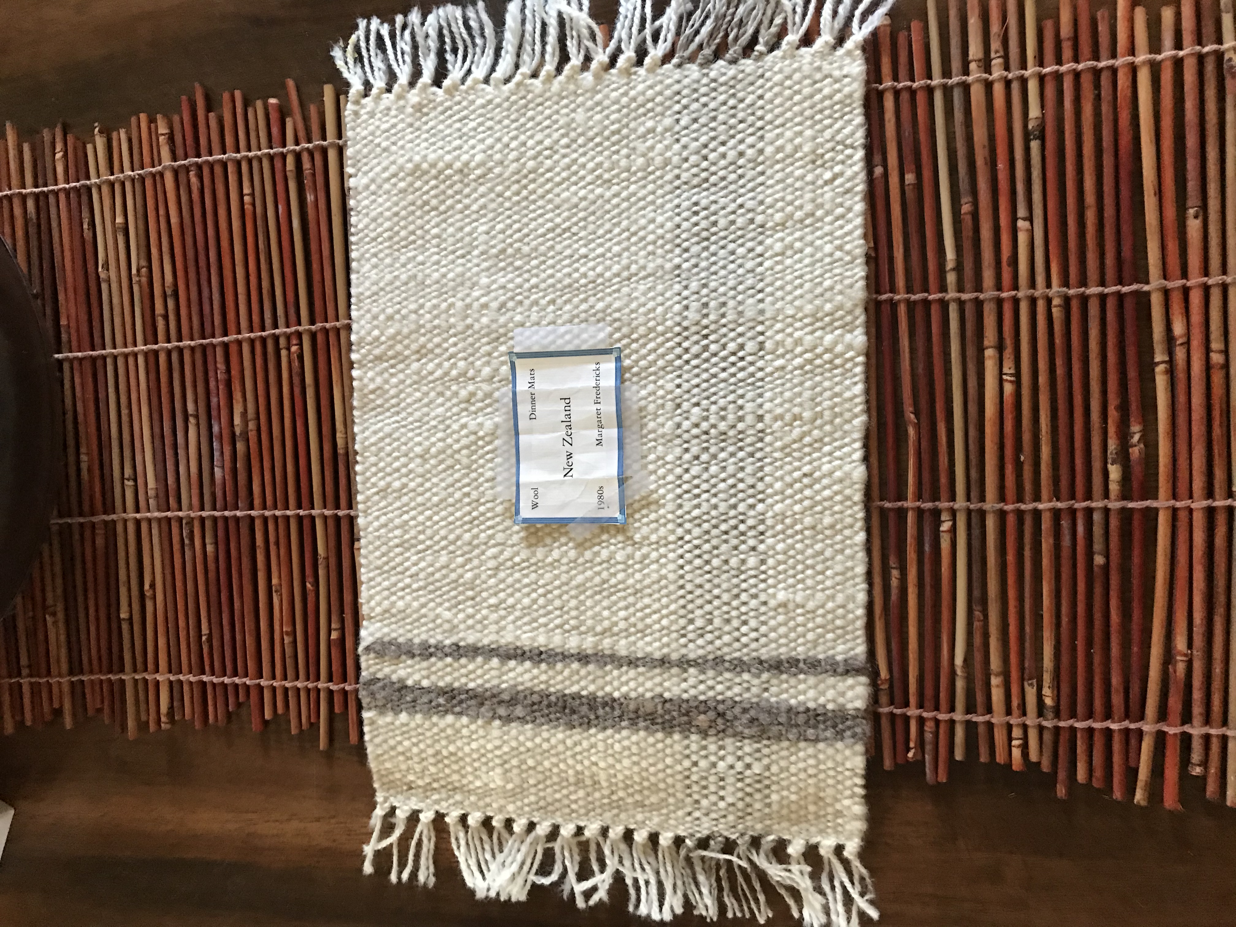 Lovely set of eight wool placemats from New Zealand. Margaret traveled there in the 80’s, according to the accompanying sticker.