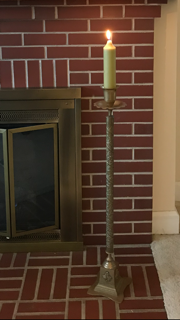 2. Ornate brass candlestick from Pakistan, approx 37” without candle.