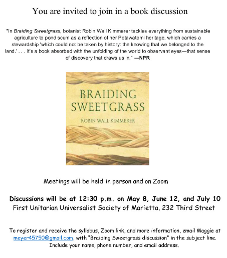 We're reading Robin Wall Kimmerer's */Braiding Sweetgrass/,* and our