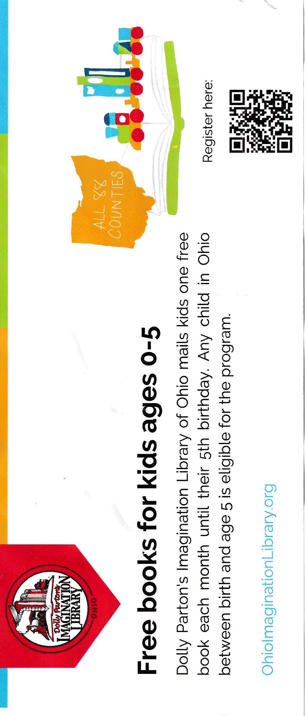 Friends, Cynthia announced this interesting idea during announcements last Sunday and it seems worthy of everyone knowing about it. Attention parents of kids 5 and under! Just scan the bar code for free books. Can’t beat that.