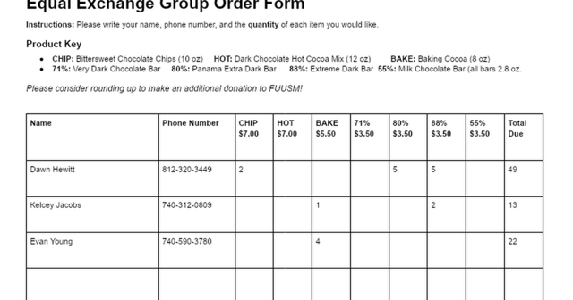 > Equal Exchage chocolate order form